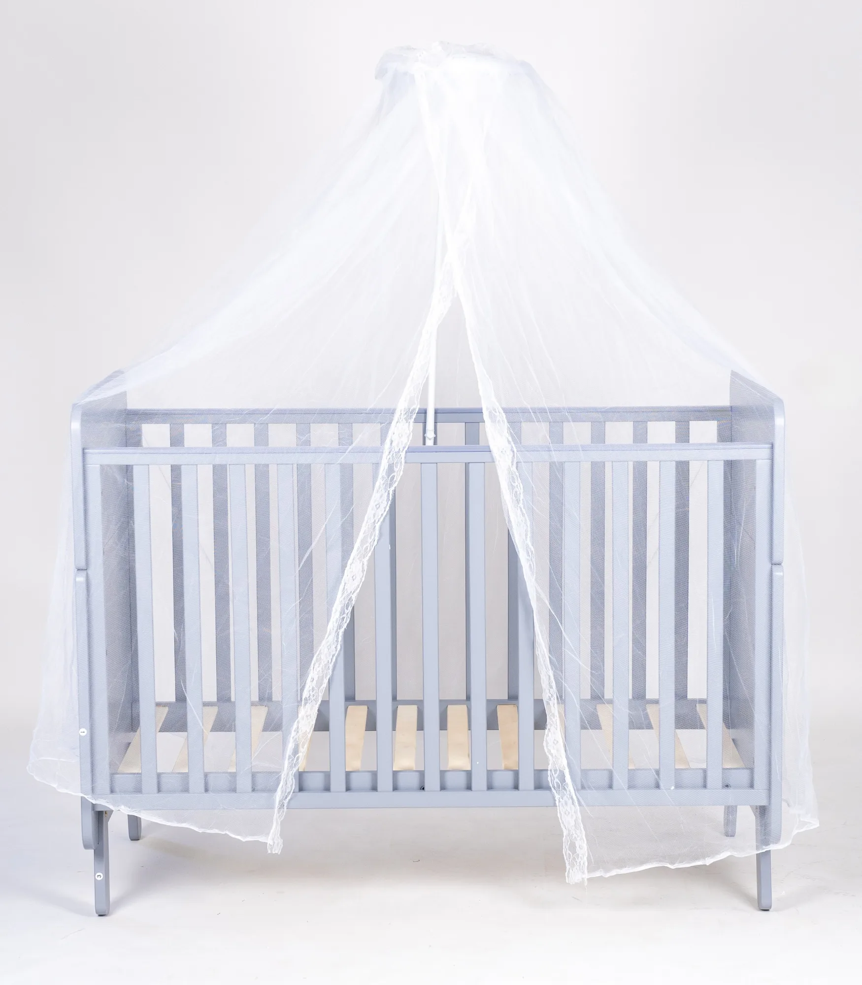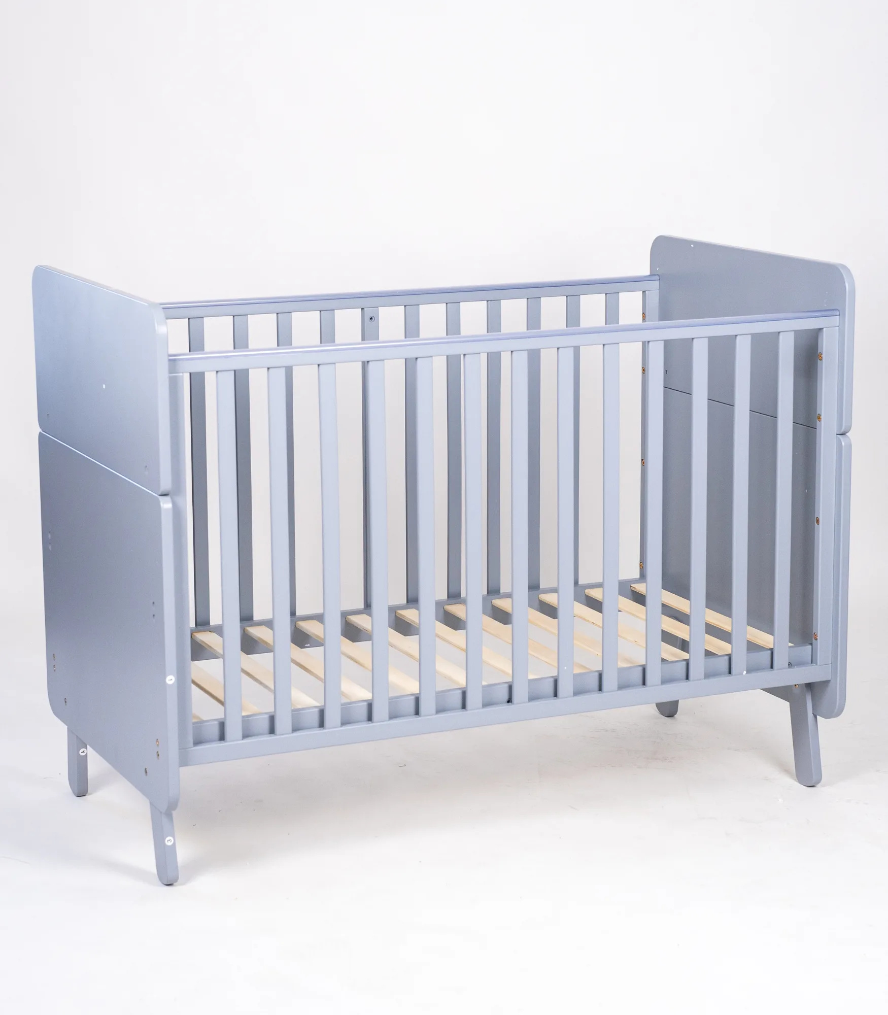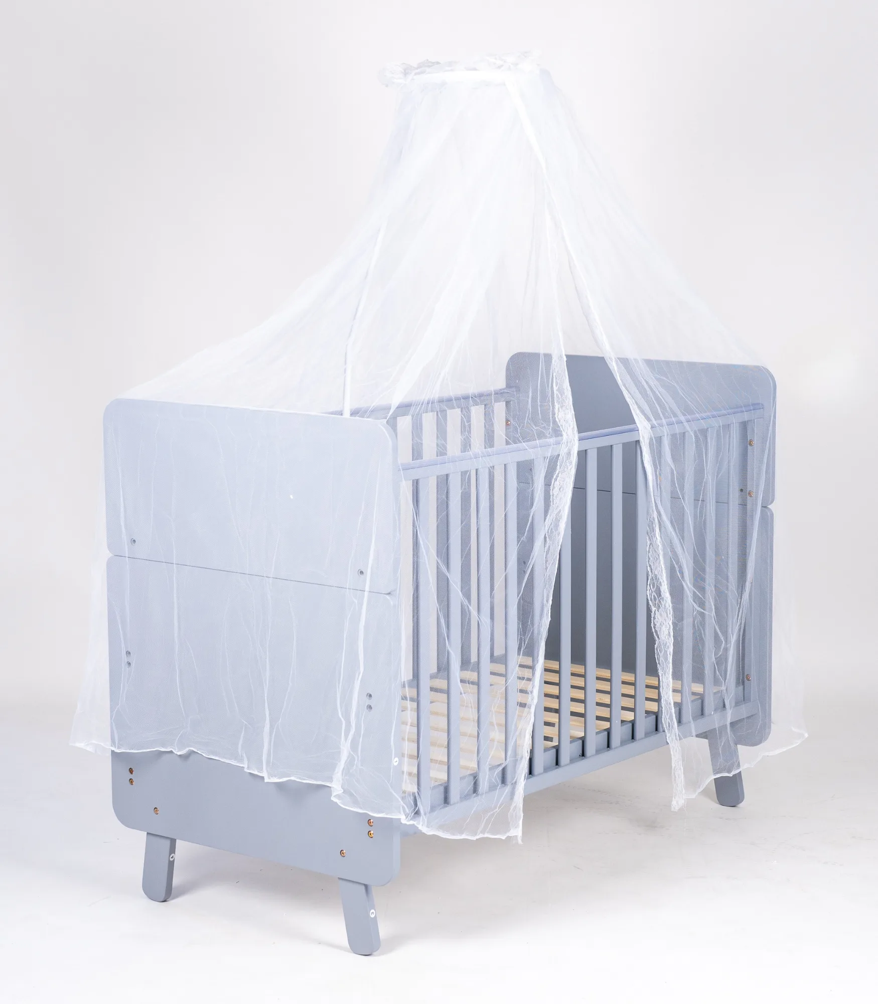 Krevetac ima dve visine podnice (2 položaja dušeka), pa ga lako prilagođavate uzrastu bebe: viši položaj je praktičan u prvim mesecima, dok se niži koristi kada beba postane aktivnija i počne da se podiže.