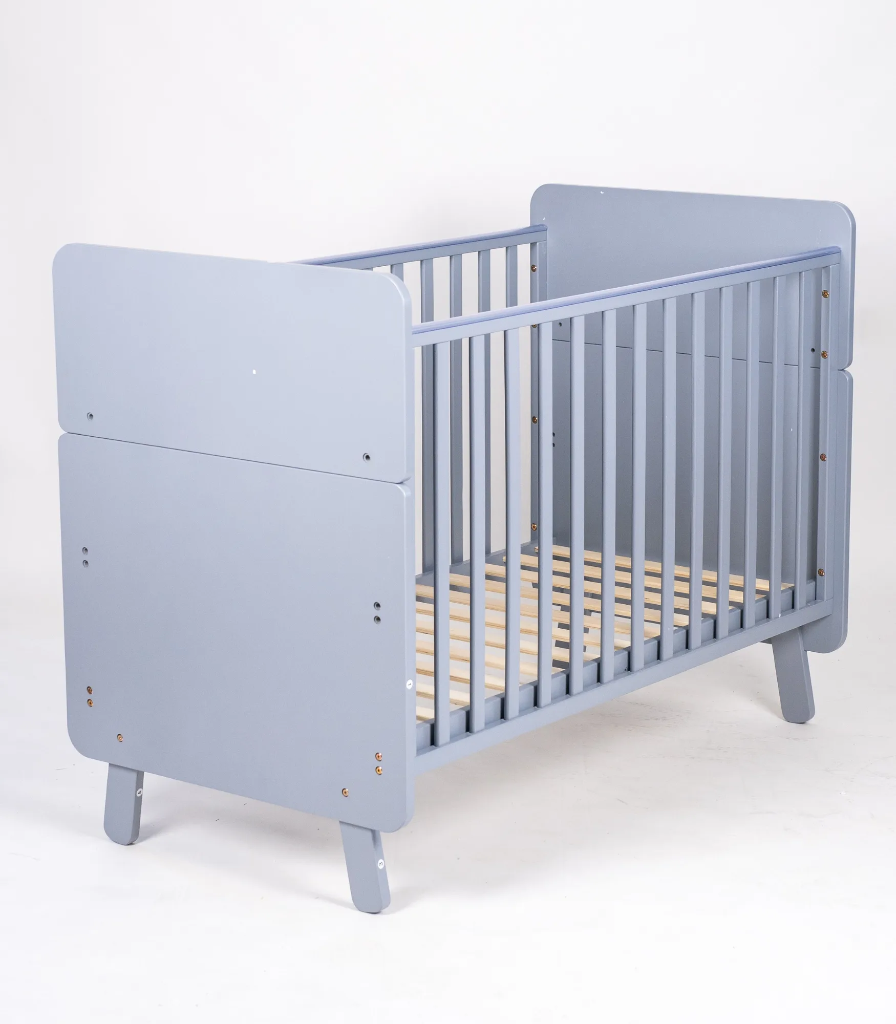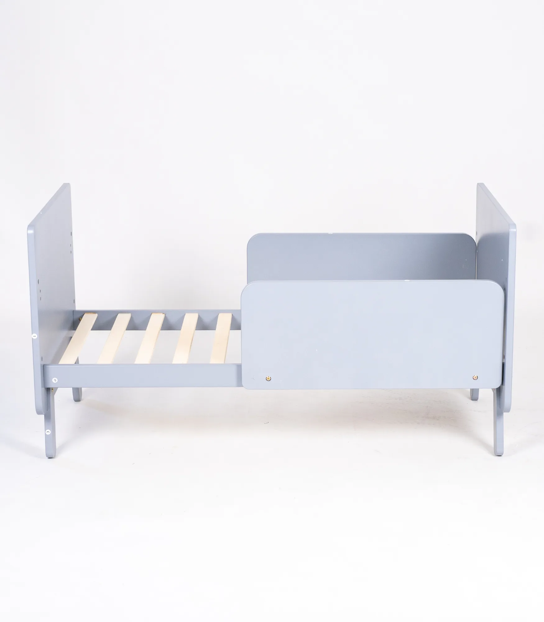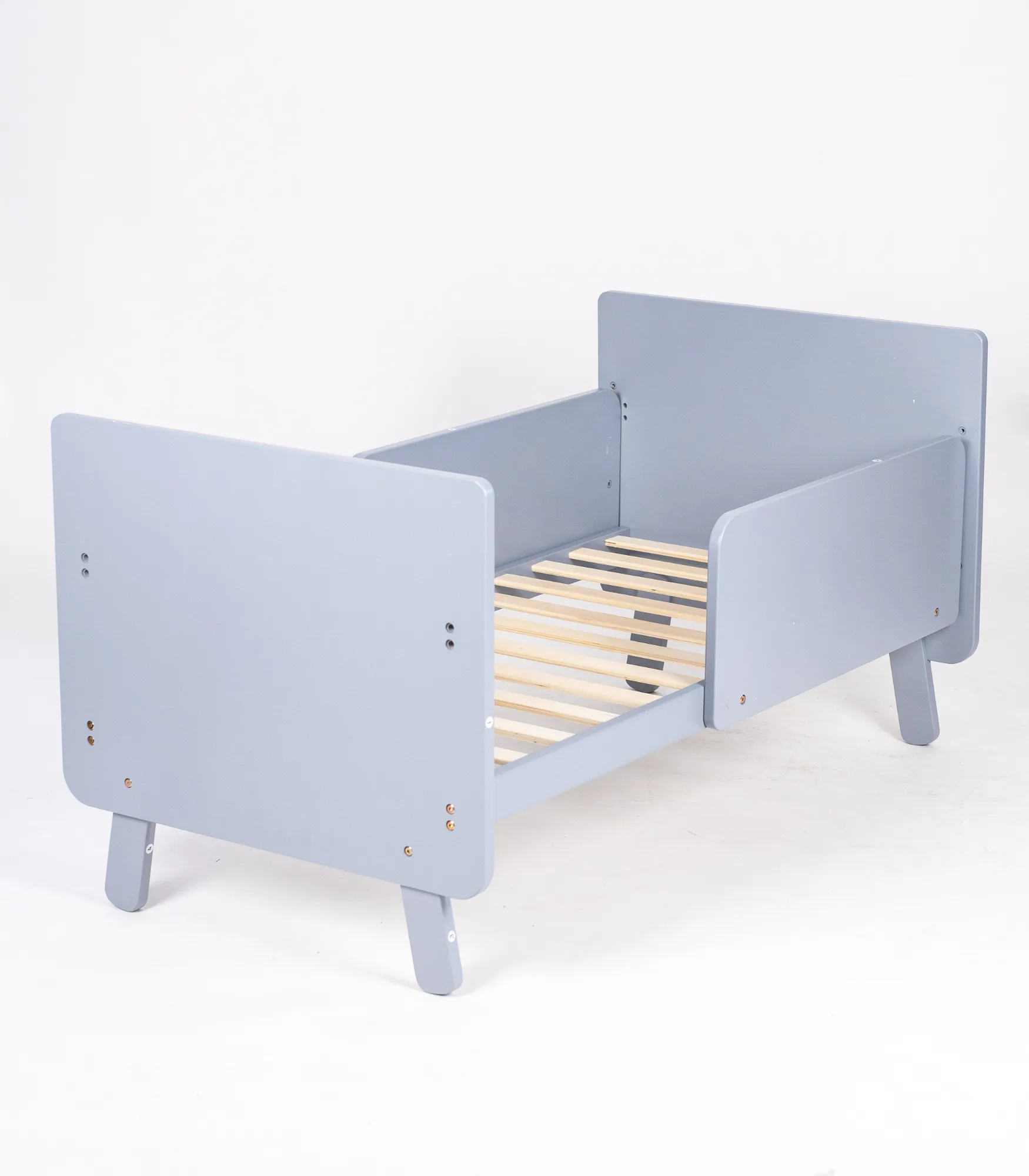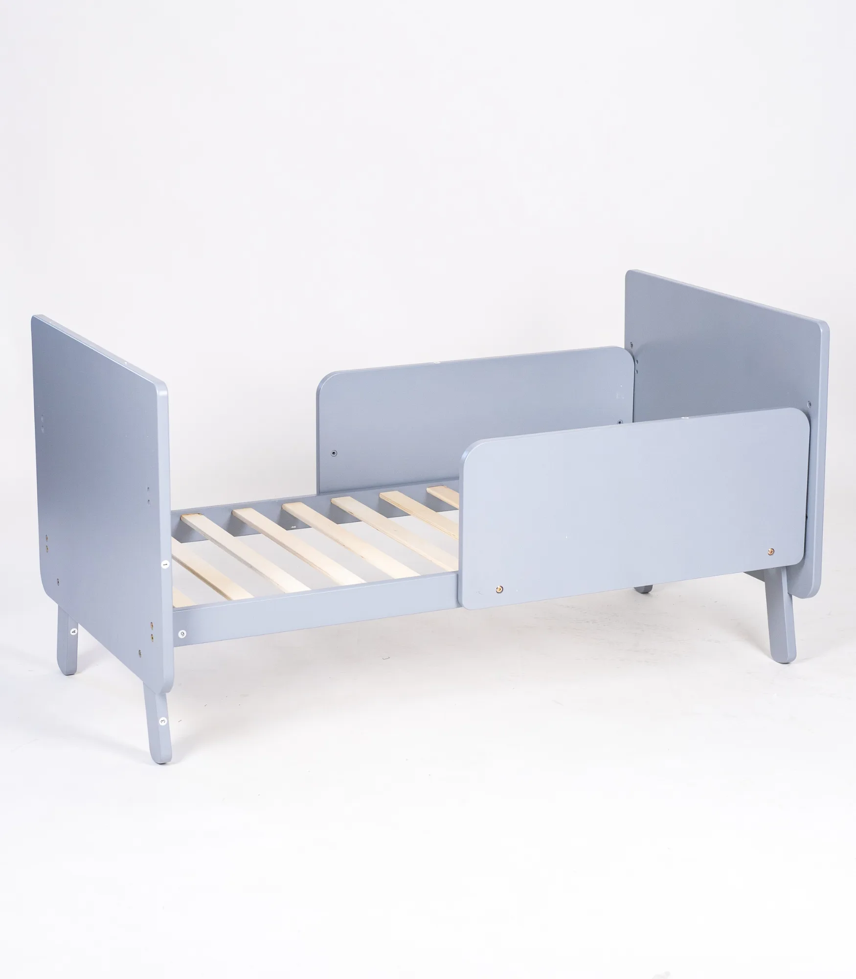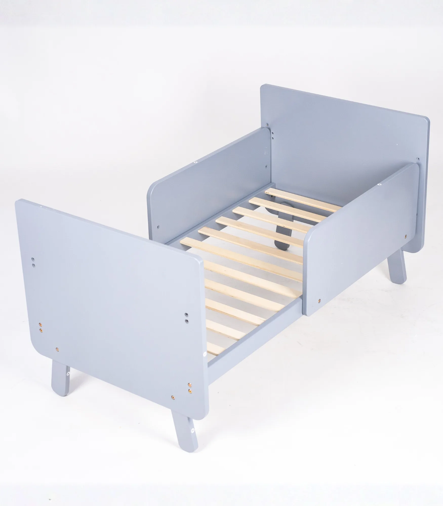 Konstrukcija je stabilna, sa punim bočnim stranicama i čvrstim letvicama, pogodna za svakodnevnu upotrebu u dečijoj sobi.
