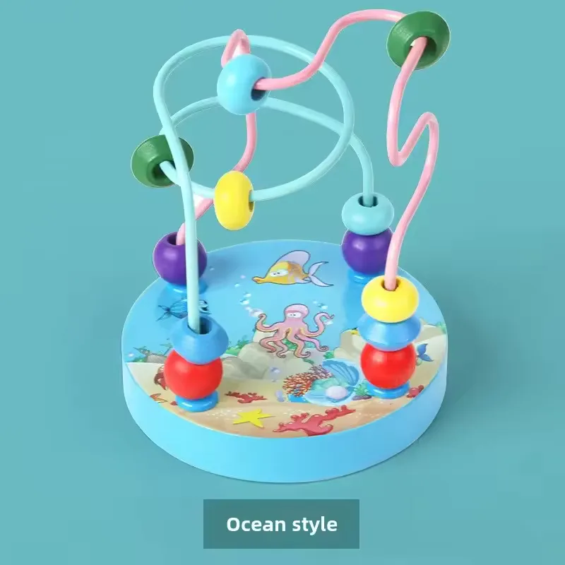 Ova šarena drvena igračka lavirint sa perlicama pruža sate kreativne i edukativne zabave za mališane.