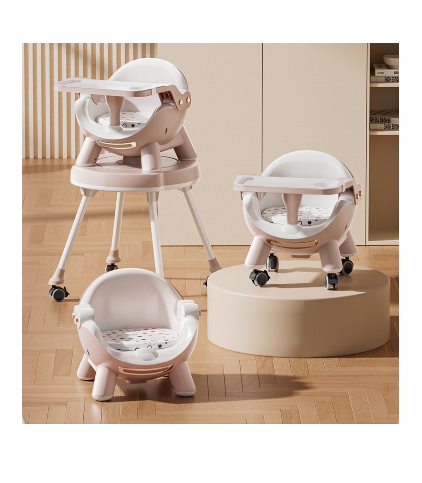 Svi znamo da deca brzo rastu, pa smo dizajnirali hranilicu koja se lako može pretvoriti iz klasične hranilice u pomocnu hranilicu ili sto i stolicu.