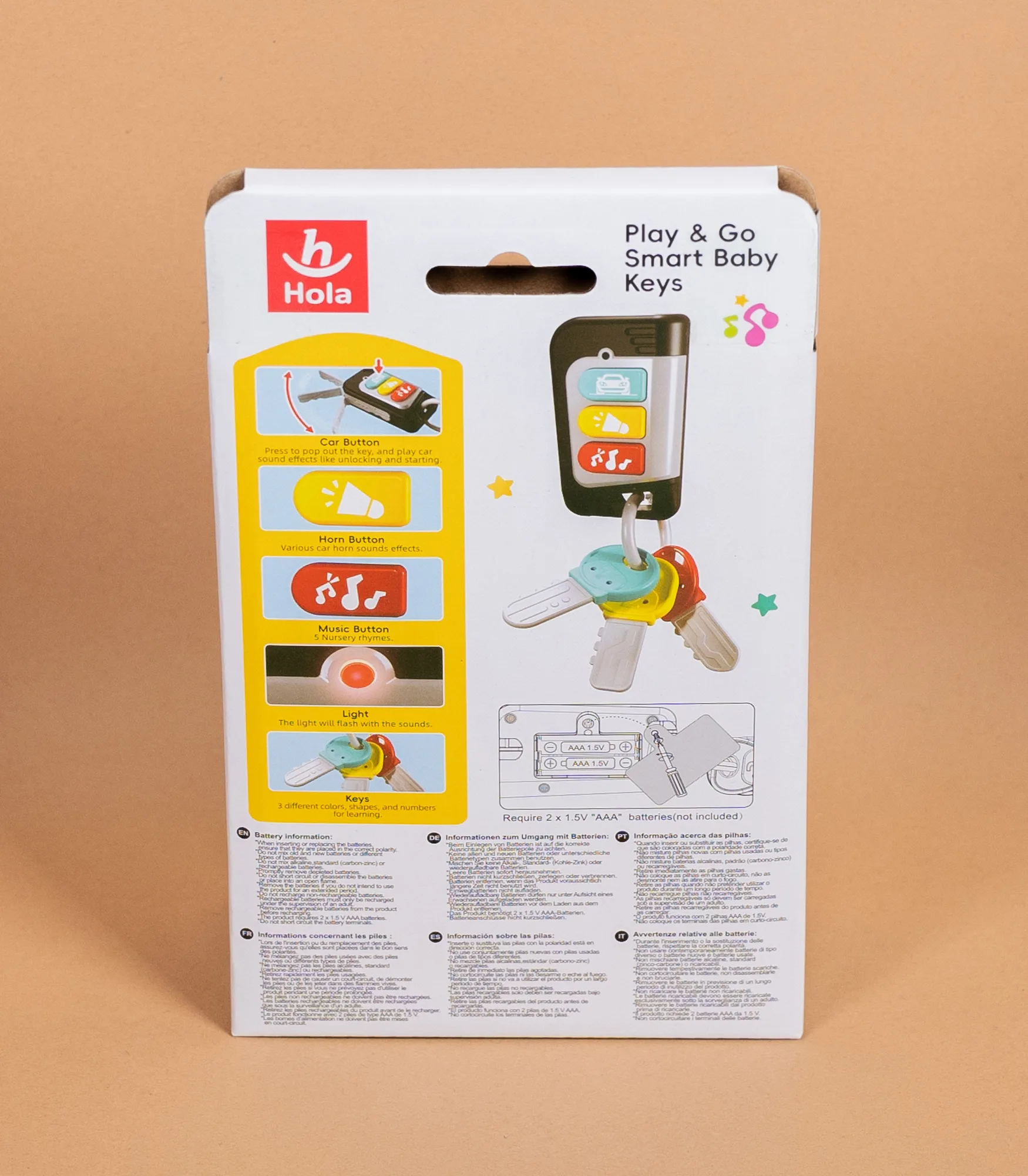 Pored toga, set sadrži i tri ključa u različitim bojama i oblicima, što pomaže detetu u ranom učenju i razvoju fine motorike (hvatanje, pritiskanje, okretanje).