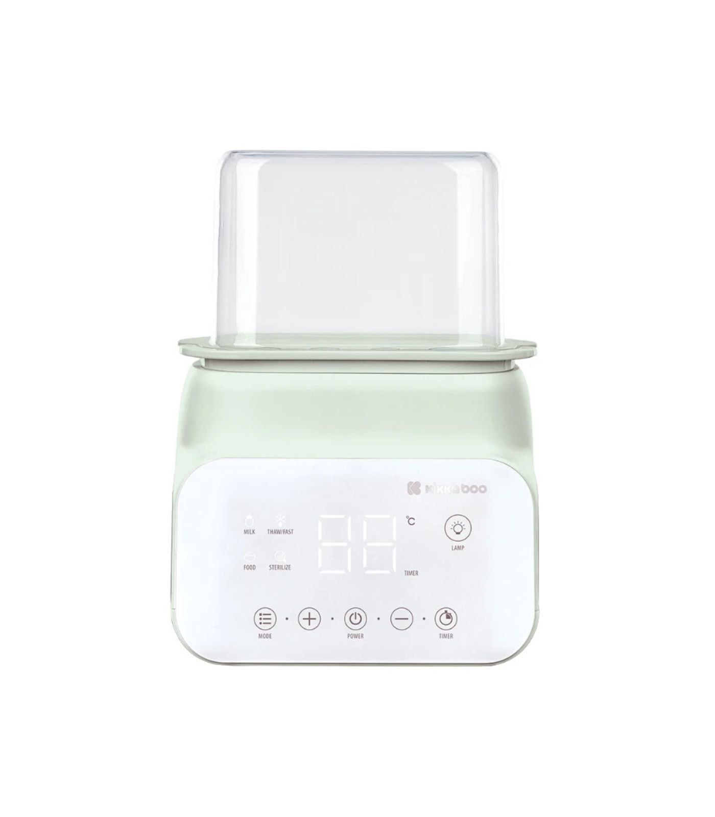 Kikka Boo Handy dvostruki grejač sa sterilizatorom 4u1 u mint boji je multifunkcionalan grejač novih generacija. Kompaktan je, prenosiv i ima praktičan dizajn. Ono što ga čini inovativnim su četiri načina rada zagrevanje mleka, odmrzavanje/brzo zagrevanje, zagrevanje hrane, sterilizacija. Predviđen za zagrevanje odnosno sterilizaciju dve flašice ili teglice istovremeno, ili sitnog pribora, zahvaljujući veliko kapacitetu 21x16cm. Ekran osetljiv na dodir, jednostavan za korišćenje. Sa funkcijom održavanja toplote, kontrola temperature moguća do 12 sati. Set uključuje: grejač, cediljku, poklopac, uputsvo za upotrebu. Poseduje noćno svetlo. Sa tajmerom, možete podesiti vreme početka njegovog rada tj. zagrevanja.