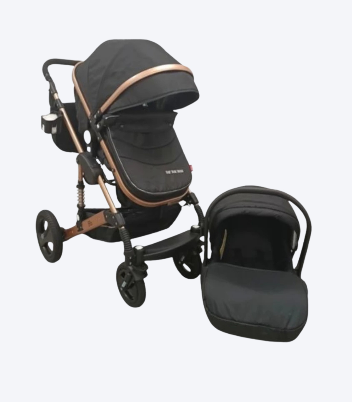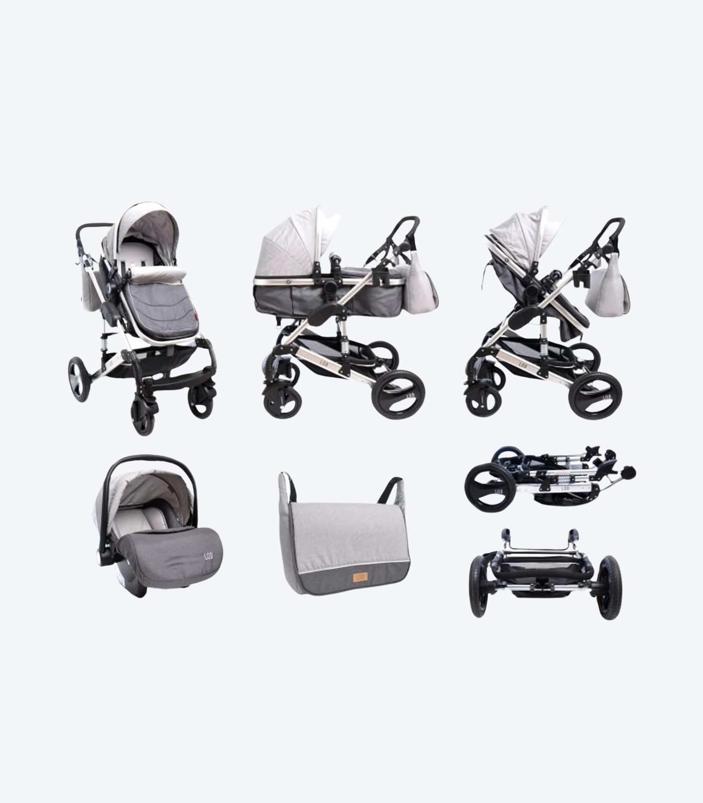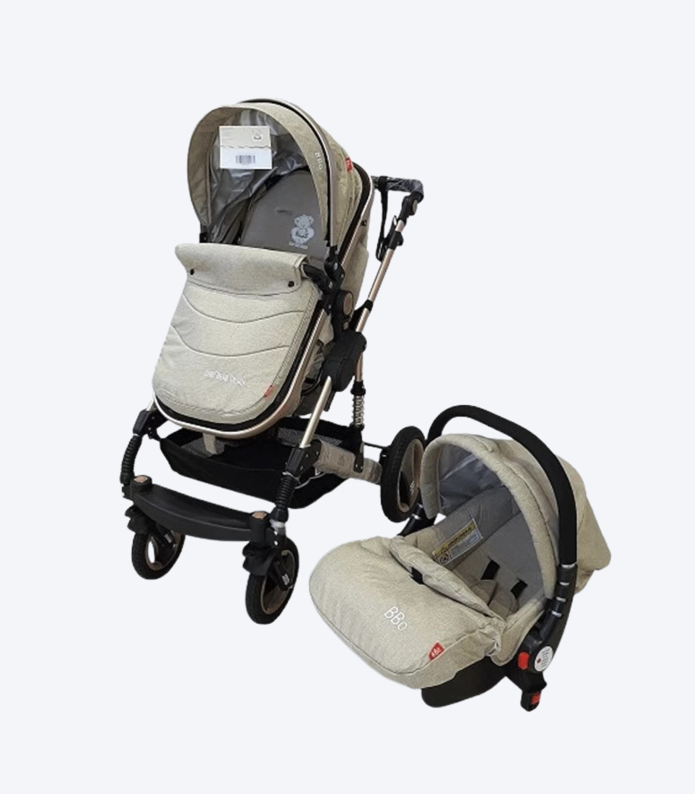U kompletu se nalazi i auto sedište Bodyguard od 0 do 13kg koje se može namontirati na ram od kolica, kišna navlaka, mrežica protiv komaraca i držač za flašicu
