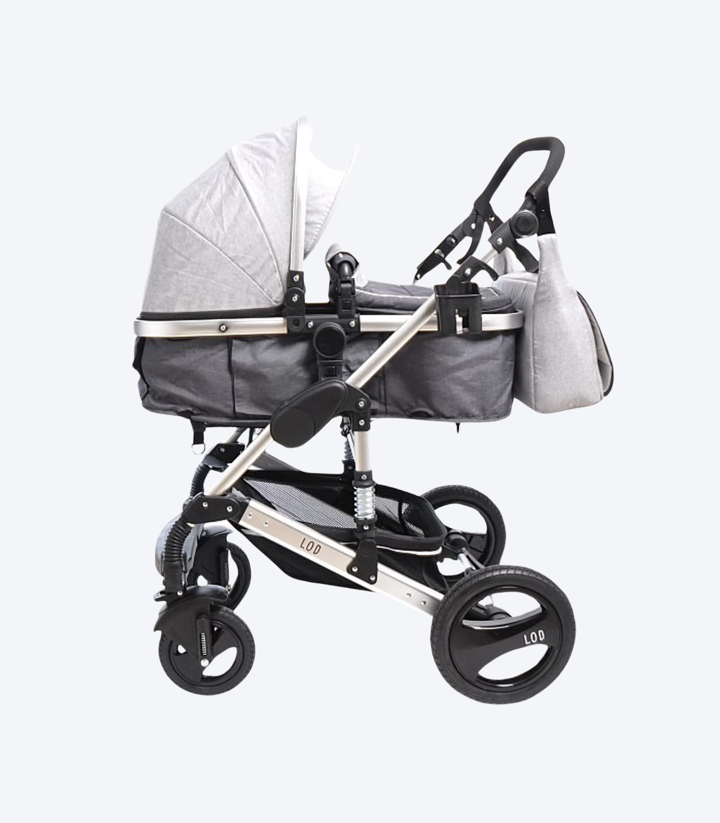 Sedalni deo i naslon imaju dva lica tako da kada budete hteli da promenite izgled vaših kolica možete ga samo obrnuti na drugu stranu