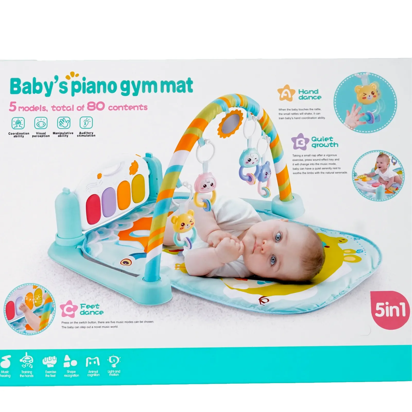 Interaktivna baby piano gym mat predstavlja savršen spoj zabave i razvoja za vaše najmlađe. Ova višenamenska podloga za igru omogućava bebama da istražuju, uče i razvijaju svoje veštine kroz igru uz melodične tonove.