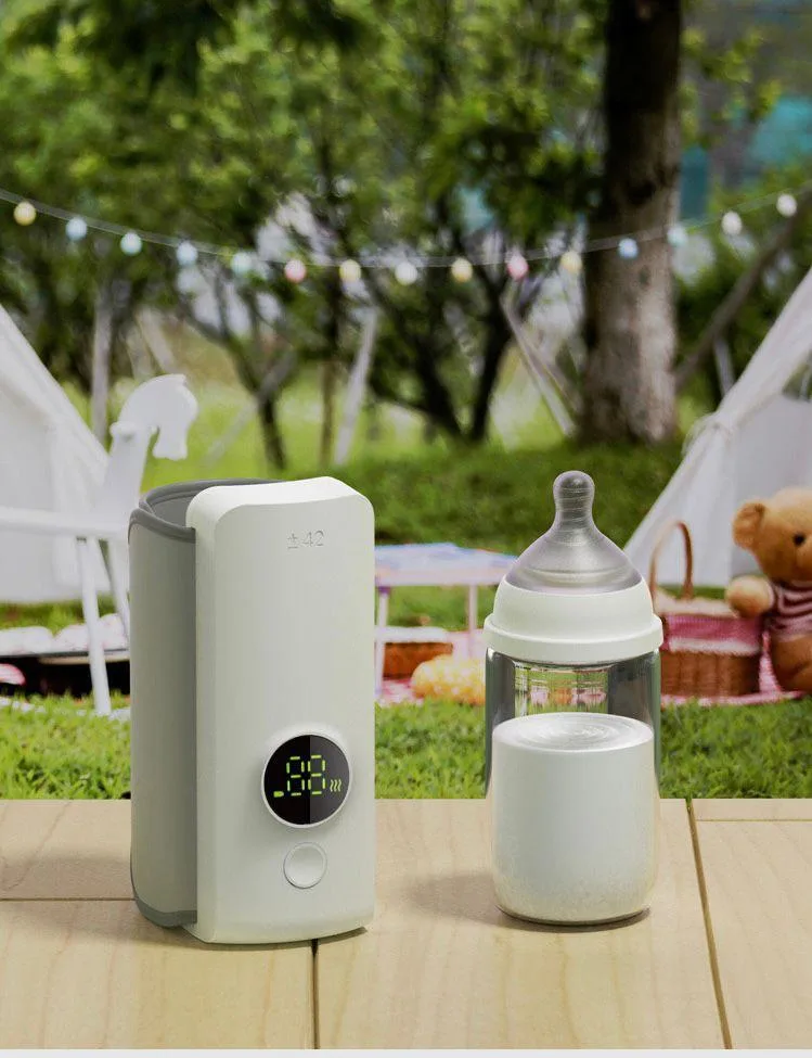 Prenosivi grejač flašice NNQ-2 sa digitalnim prikazom (42°C). Punjiv preko USB-a, kompaktan i praktičan za putovanja i šetnje.